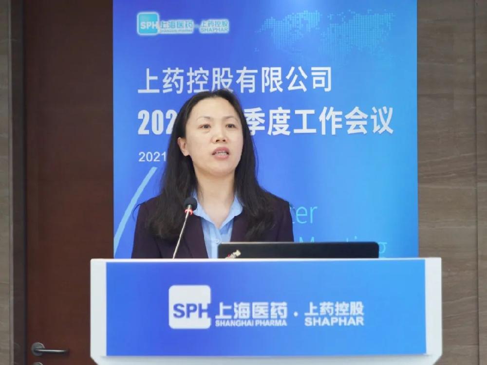 ▲上藥控股黨委書記、副總經(jīng)理柳亞玲作黨委工作部署