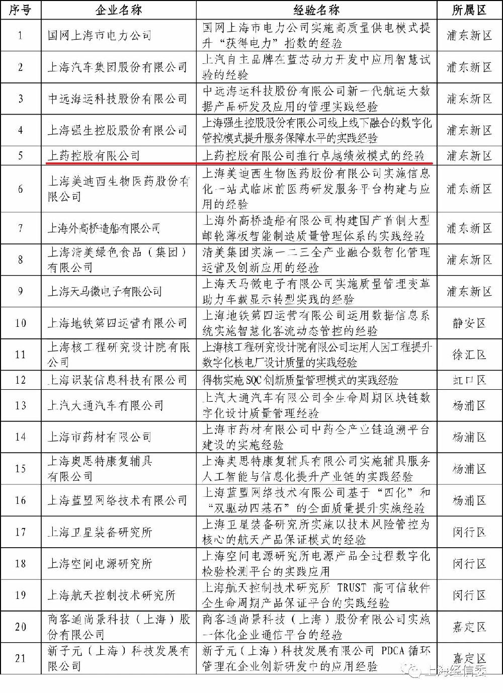 近日,上海市經(jīng)濟(jì)信息化委公布了2020年度上海市“質(zhì)量標(biāo)桿”名單,上藥控股申報(bào)的“上藥控股有限公司推行卓越績(jī)效模式的經(jīng)驗(yàn)”作為本次公示的21項(xiàng)企業(yè)經(jīng)驗(yàn)之一,成功入選名單。