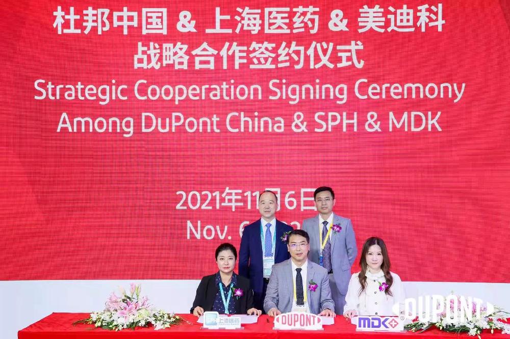 11月6日下午,上藥控股旗下上藥醫(yī)療器械(上海)有限公司與杜邦、美迪科舉行戰(zhàn)略合作簽約儀式。杜邦個(gè)人防護(hù)中國(guó)區(qū)商務(wù)總監(jiān)戚敏,美迪科(上海)醫(yī)療包裝材料有限公司總經(jīng)理趙凌,上藥控股副總經(jīng)理、上藥醫(yī)療器械執(zhí)行董事任剛等出席簽約儀式。