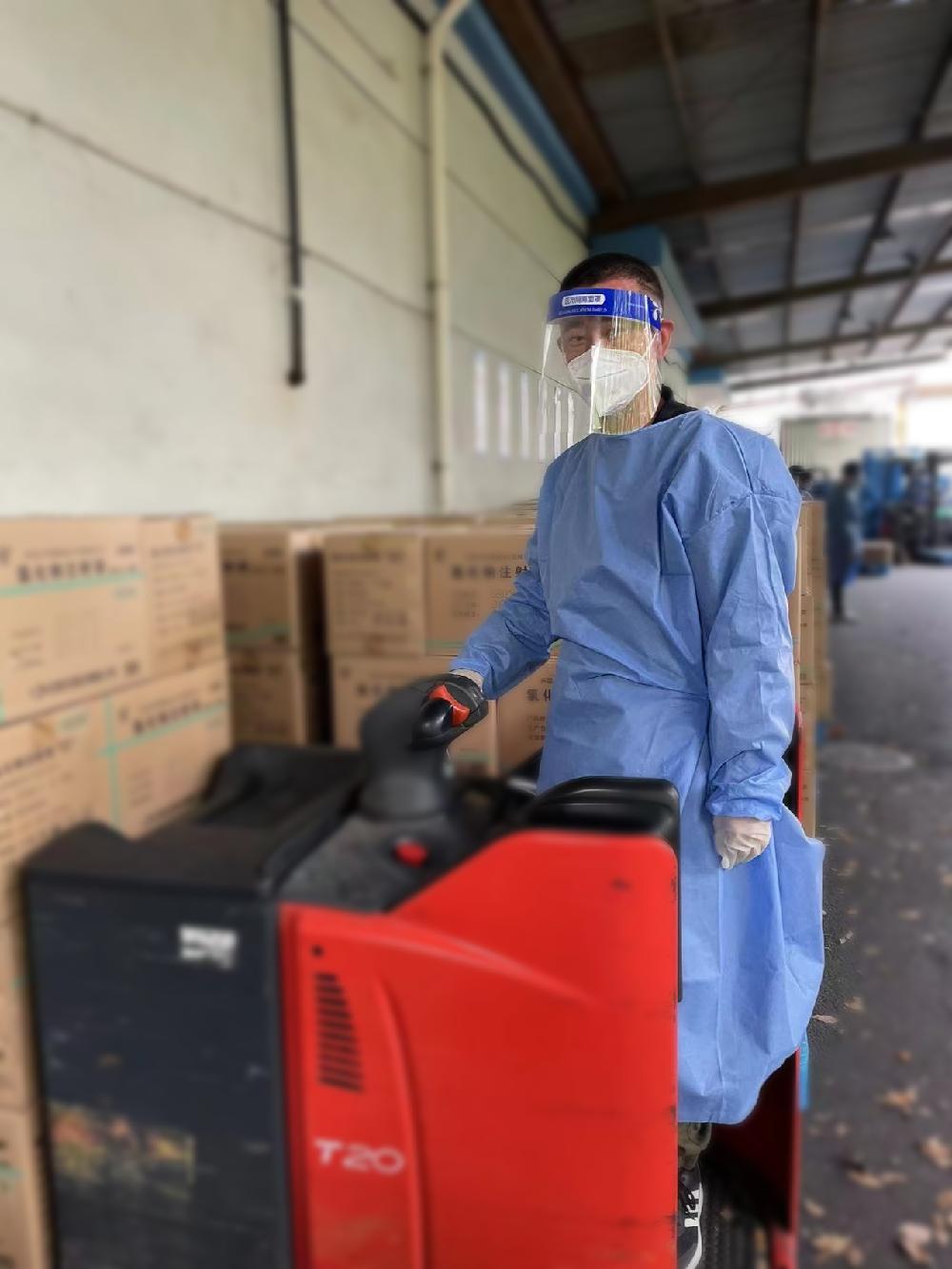 24小時不停歇,是上藥物流一個月來的工作常態(tài)。“豈曰無衣?與子同袍!”志愿者們逆行而來,擔(dān)任物流作業(yè)員、駕駛員、叉車工、裝卸工等重要崗位,全身心投入到庫區(qū)全封閉管理的配送工作中,與上藥物流的鐵軍們一起,為守護(hù)民眾健康而戰(zhàn)。